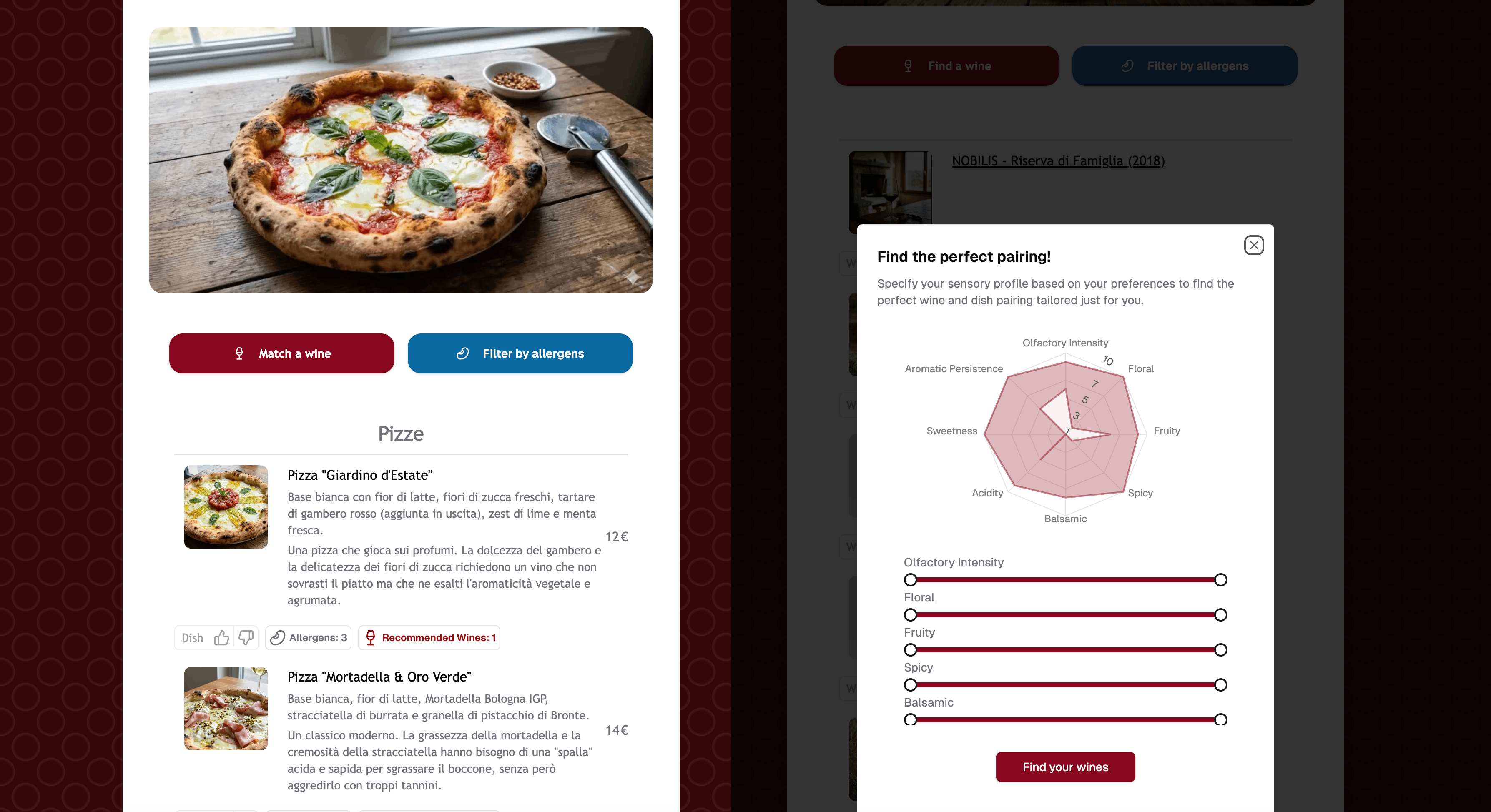 Scopri un app digitale dedicata al mondo del vino e della ristorazione, progettata per connettere produttori, distributori, ristoranti e appassionati all’interno di un unico ambiente. Produttori e distributori possono caricare e gestire i propri vini attraverso schede complete e sempre aggiornate, mentre i ristoranti possono creare il proprio menu digitale, descrivendo piatti, ingredienti e allergeni in modo chiaro e conforme.
